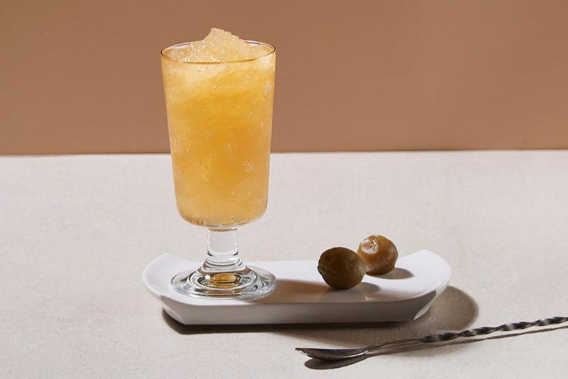 - グラスに凍らせた梅酒をスプーンでよそう
